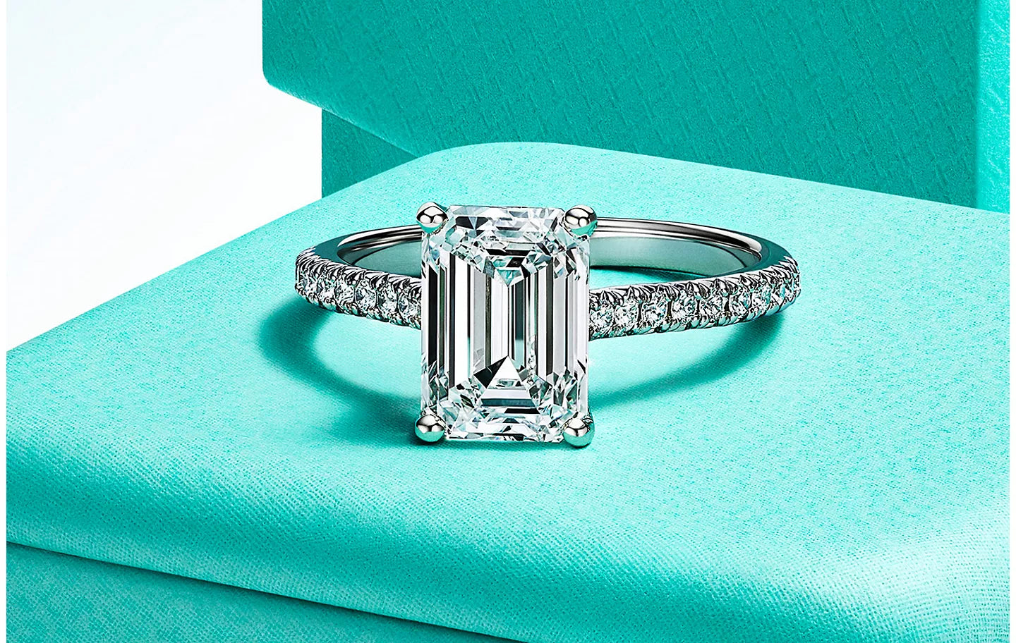 Emerald-cut diamonds are sought after for their understated glamour and eye-catching depth. This octagonal step cut features parallel, rectangular facets; and it is the large, open table that highlights the stone’s pure color and icy clarity. The emerald cut is a suitable choice for those seeking an Art Deco-inspired engagement ring style.