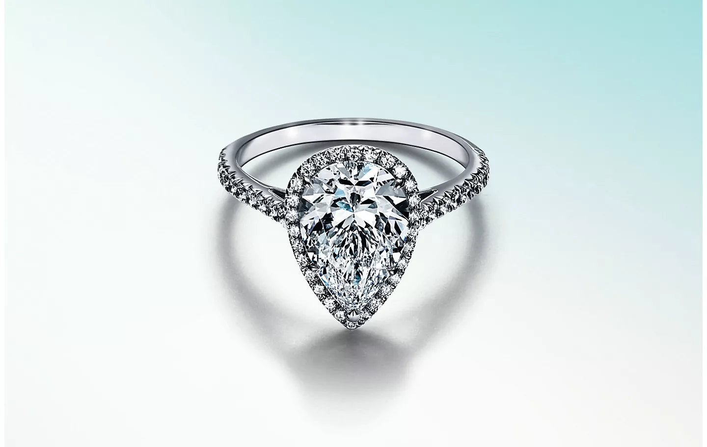The pear shape combines round brilliant and marquise styles to form a tapered teardrop with an extraordinary display of light. Like oval and marquise diamonds, the flattering pear shape elongates the finger—especially when worn with the point facing the nail. HEFFF pear-shaped diamonds showcase exacting symmetry and are exceptionally beautiful in halo settings.
