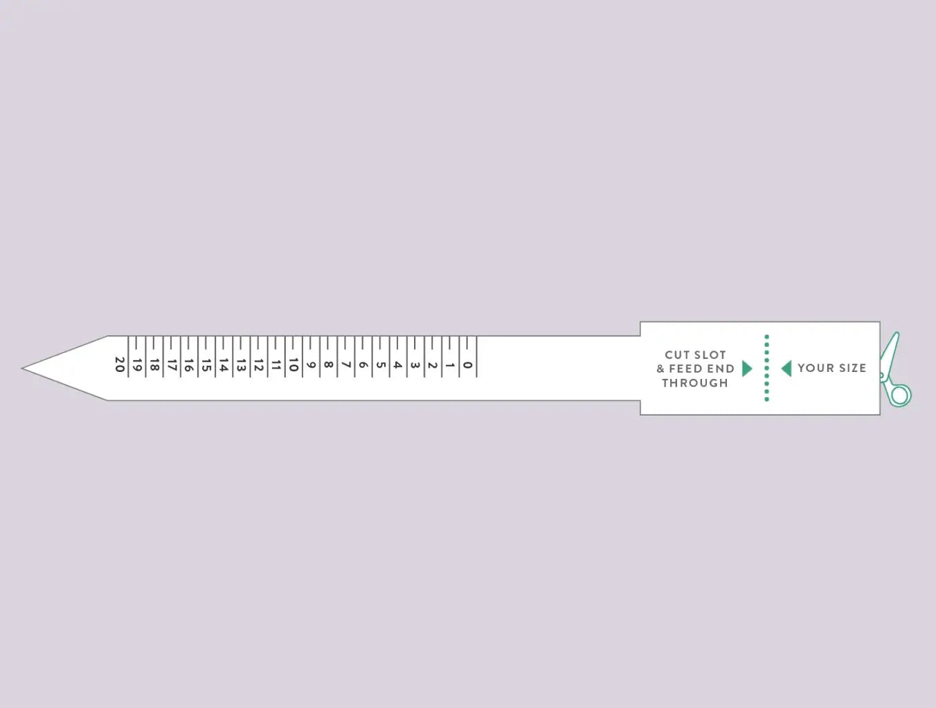 All you have to do is wrap our sizer around the finger you'd like to measure and adjust it to the size that feels right. The perfect size will be snug enough not to slip off but loose enough to slide over the knuckle without too much resistance.